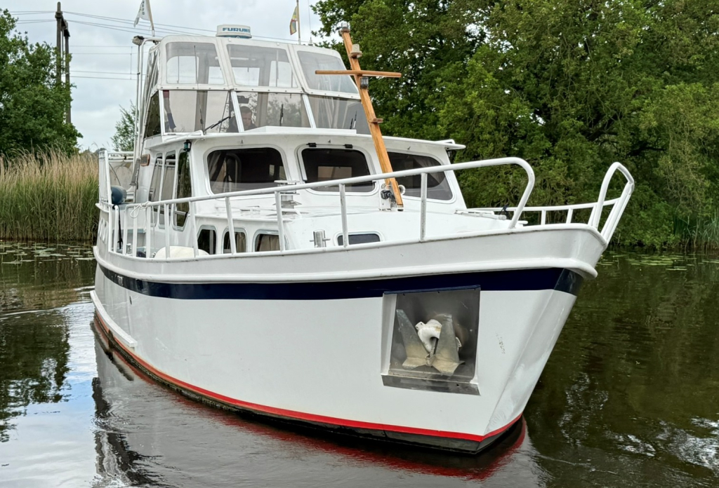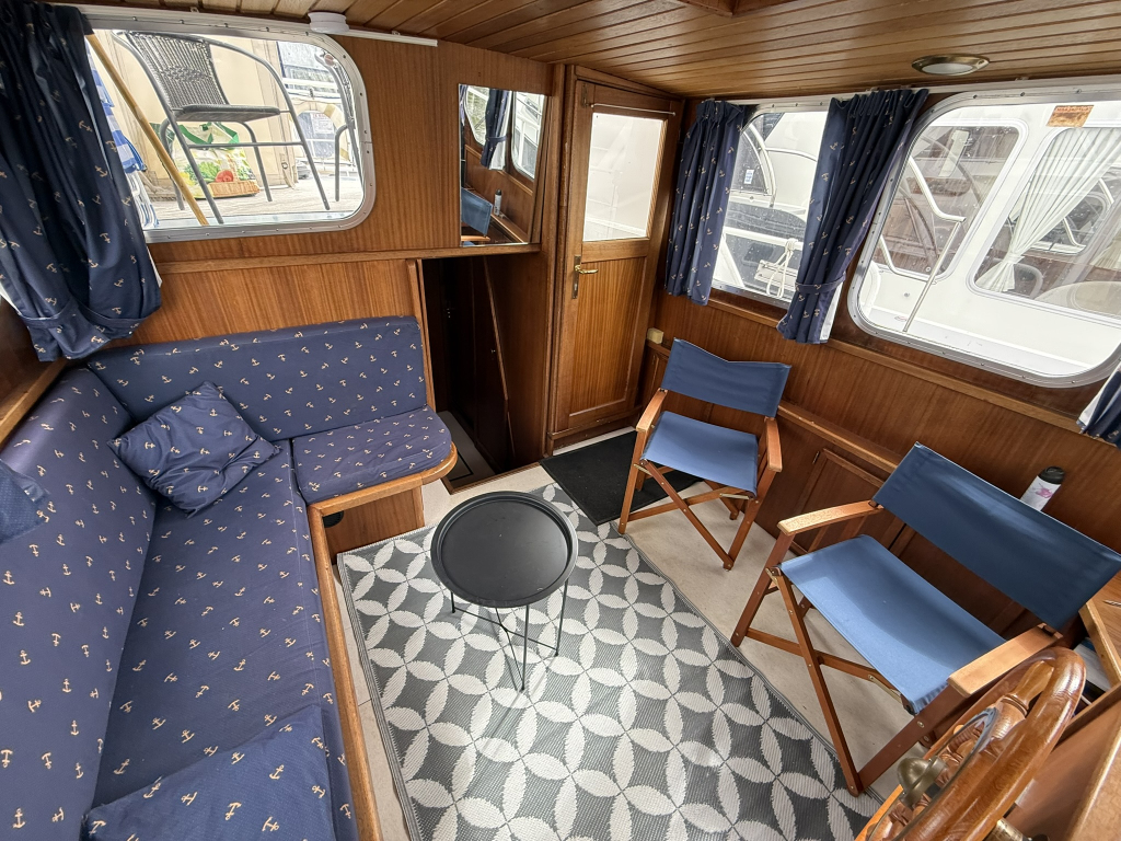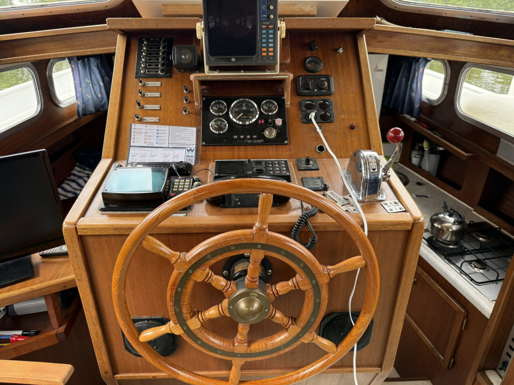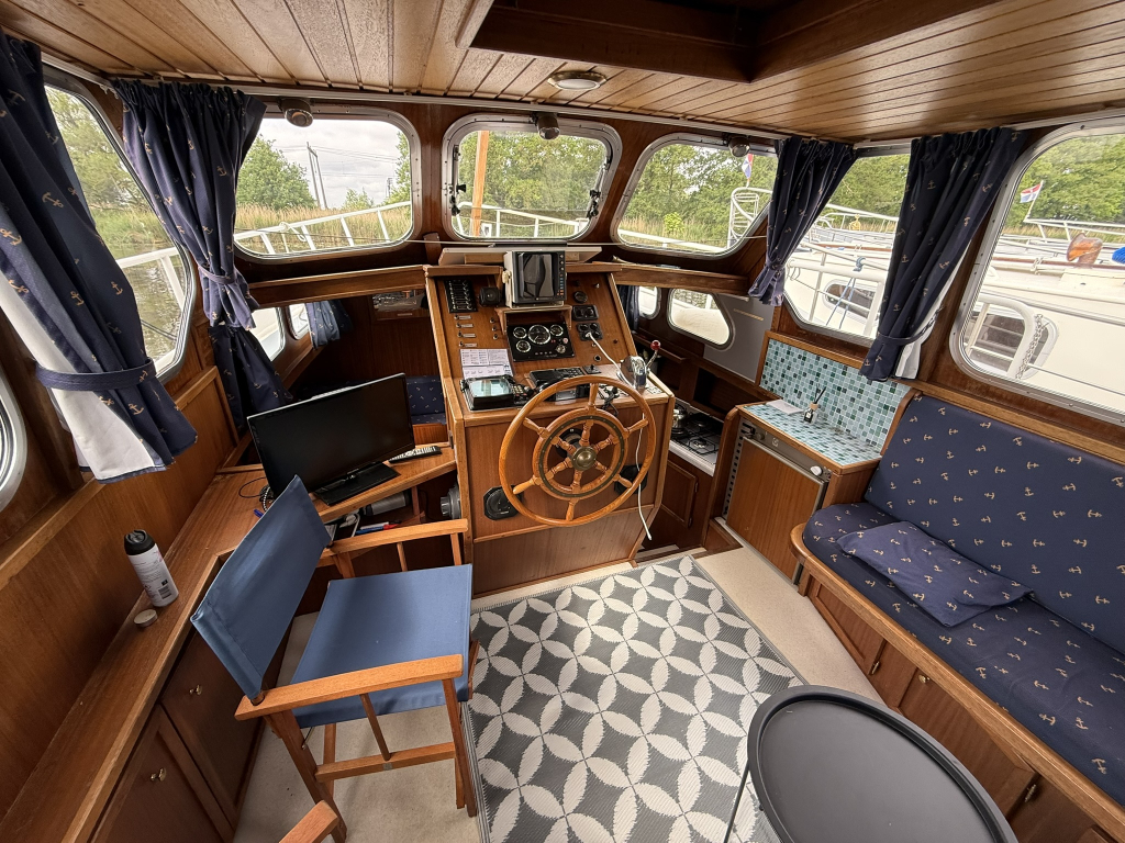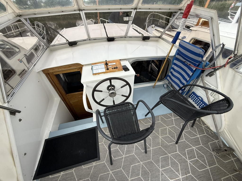 Ruime nette motorkruiser met jonge motor, boegschroef en douche Motor uit 2021 zeer zuinig in verbruik + volle tank Leuke aparte indeling door stuurstand binnen in het midde
