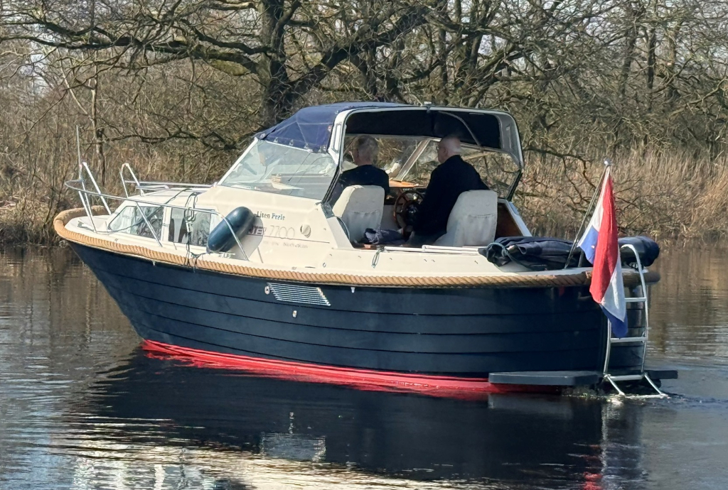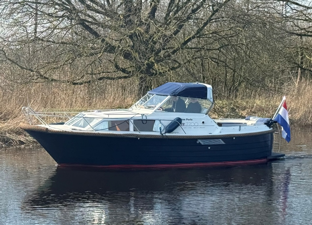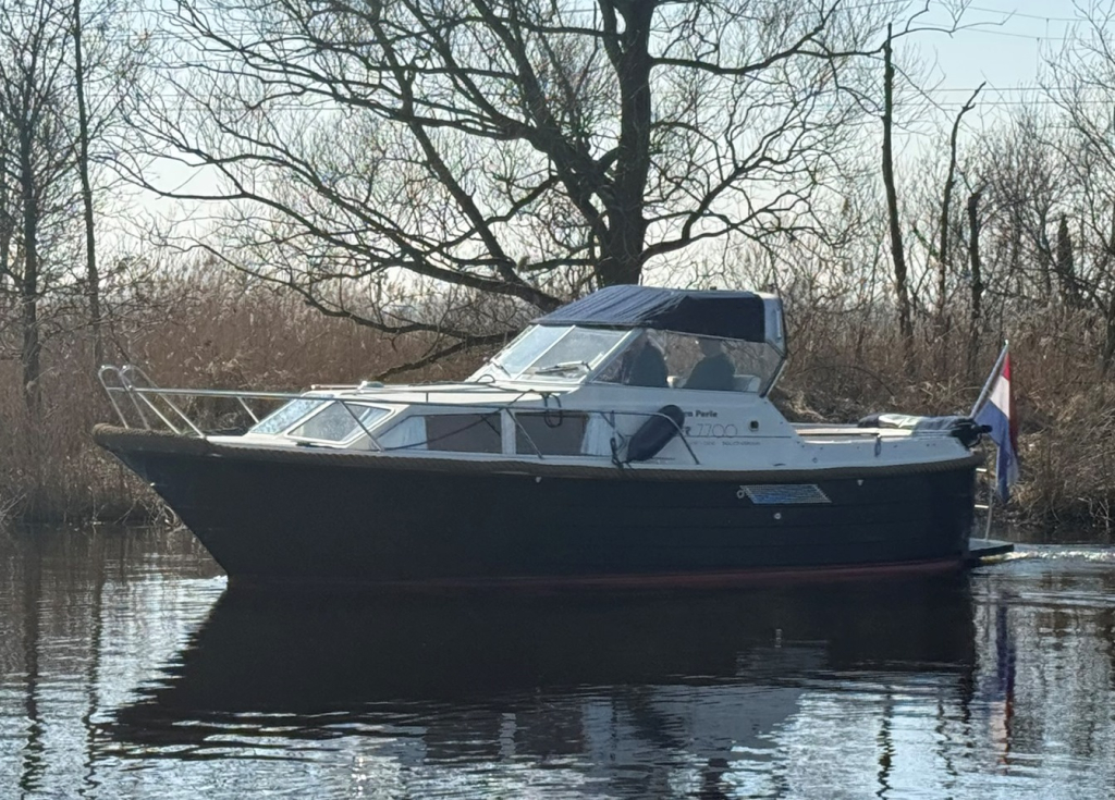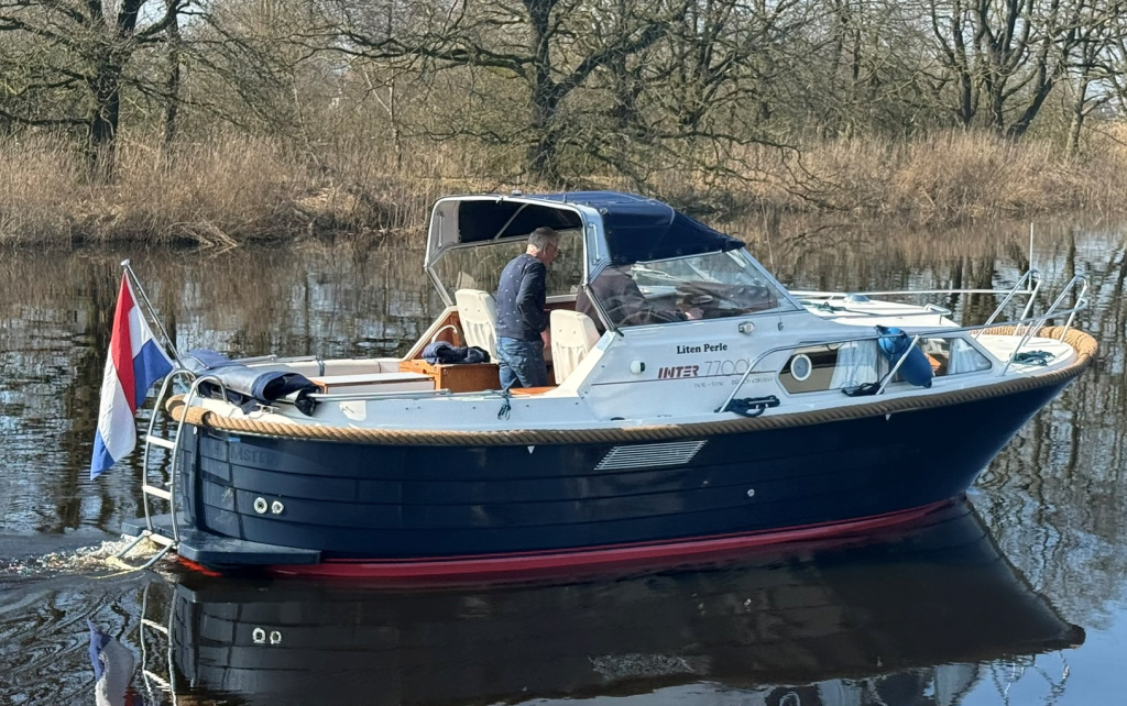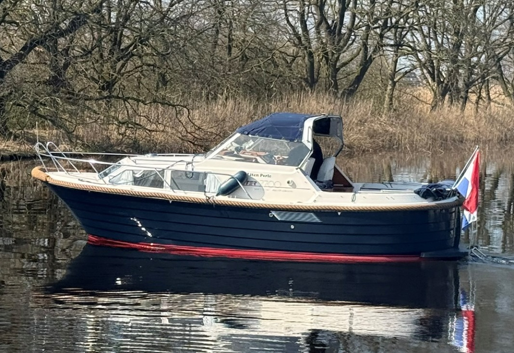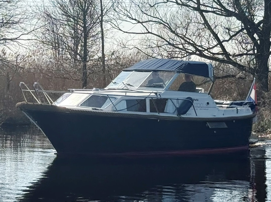 Stoere kustwatergeschikte spitsgatter met sterke motor en boegschroef Luxe uitgerust met warm water en buitendouche Onderwaterschip behandeld 2025Motorbeurt 2025