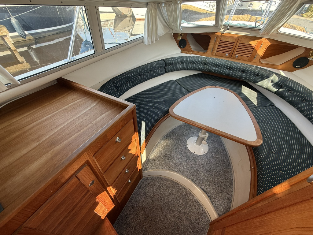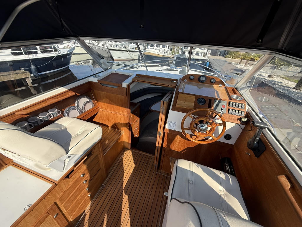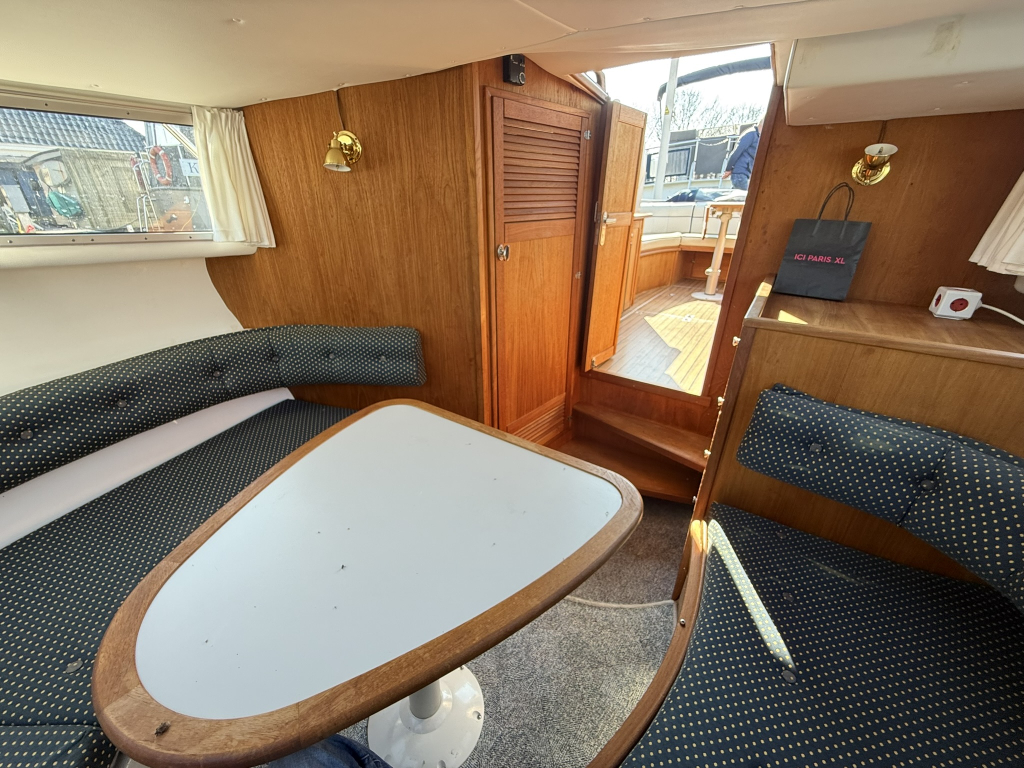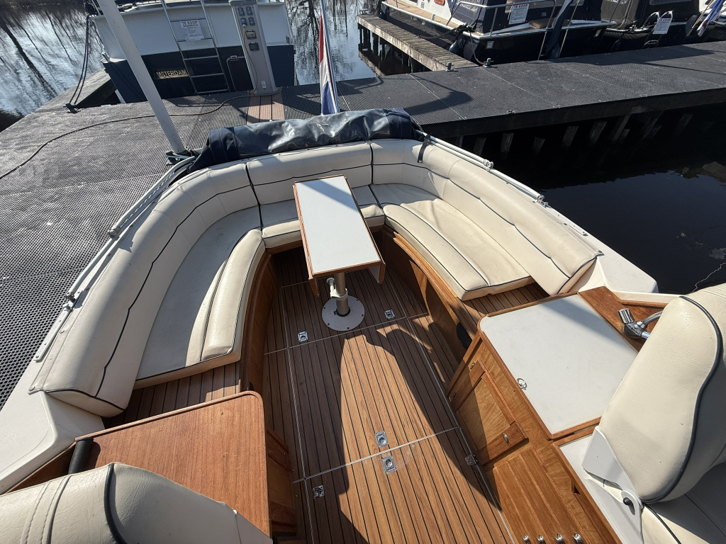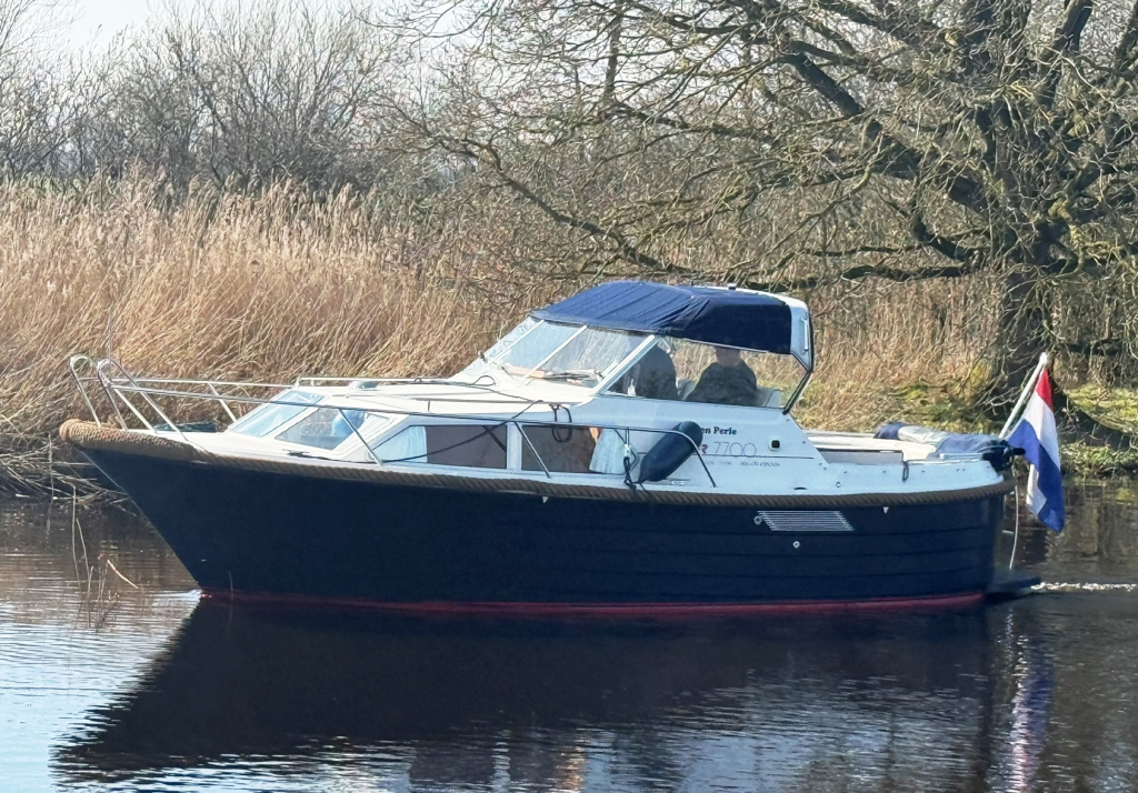 Stoere kustwatergeschikte spitsgatter met sterke motor en boegschroef Luxe uitgerust met warm water en buitendouche Onderwaterschip behandeld 2025Motorbeurt 2025