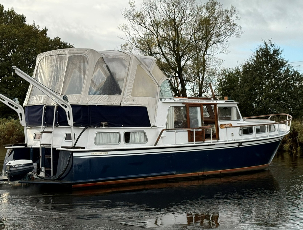 Ruime Pikmeer kruiser met boegschroef Onderwaterschip behandeld 2024Extra Buitenboordmotor geplaatst met extra stuurstand (hekschroef functie )Deze word professioneel verw