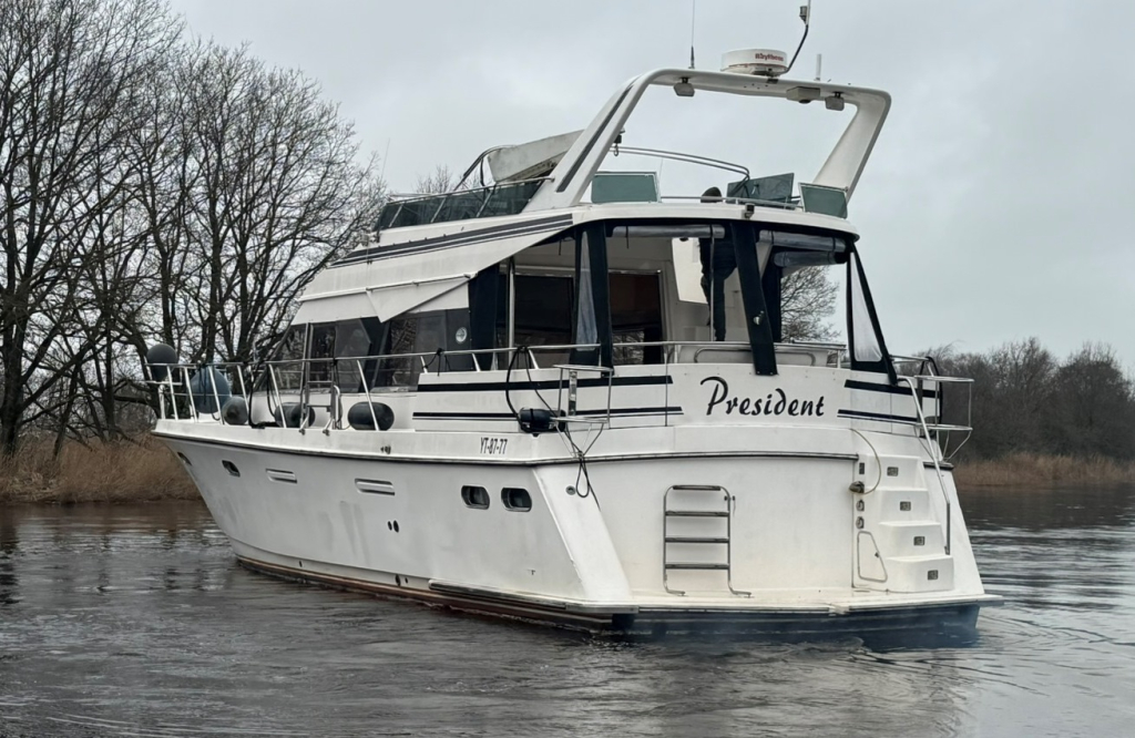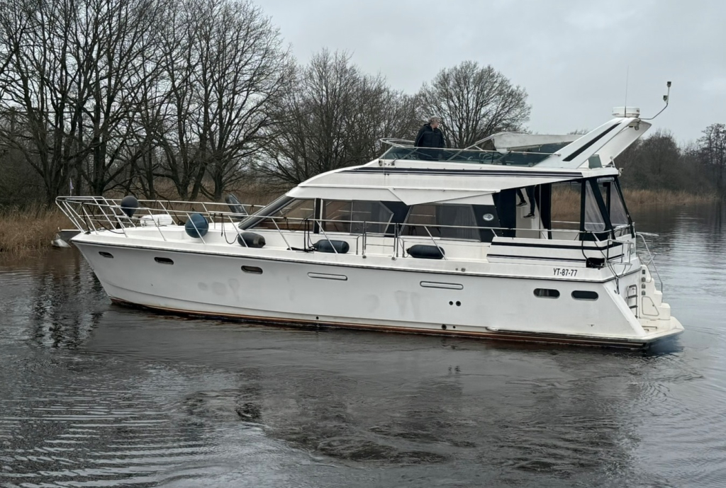 Zeer ruime grootwater geschikte motorkruiserGeschikt voor langer verblijf / bewoning 3 hutten met 6 vaste slaapplaatsen Luxe uitgerust met 2 x douche en toilet